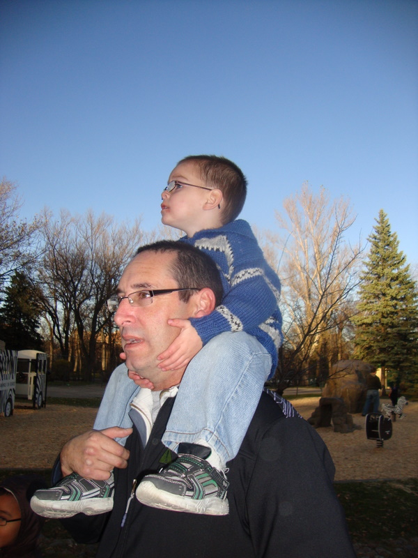 So, after freezing our behinds off during family photos Saturday morning; we decided we hadn't had quite enough punishment, so we went to Boo at the Zoo in the evening. For those of you who don't live in the Winnipeg area, this is a Halloween event that the Zoo puts on every year. They have different vingnettes of scary stuff, rides, mini donuts and it's lots of fun for the kids.